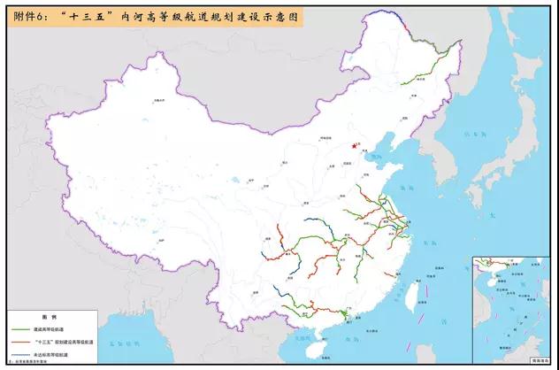推進長江干線航道系統治理,改善上游航道條件,提升中下游航道水深,加快南京以下12.5米深水航道建設,研究實施武漢至安慶航道整治工程、長江口深水航道減淤治理工程。繼續推進西江航運干線擴能,推進貴港以下一級航道建設。加快京杭運河山東段、江蘇段、浙江段航道擴能改造以及長三角高等級航道整治工程。加快合裕線、淮河、沙潁河、贛江、信江、漢江、沅水、湘江、嘉陵江、烏江、岷江、右江、北盤江—紅水河、柳江—黔江、黑龍江、松花江、閩江等高等級航道建設。 |