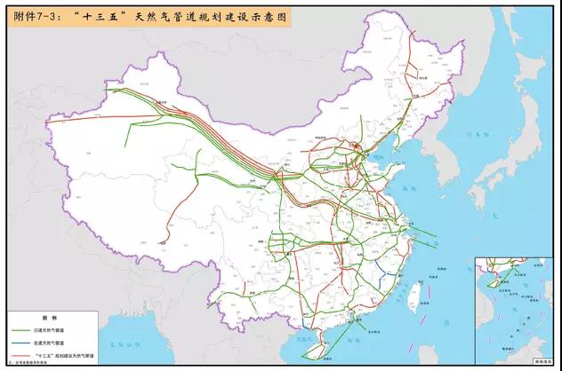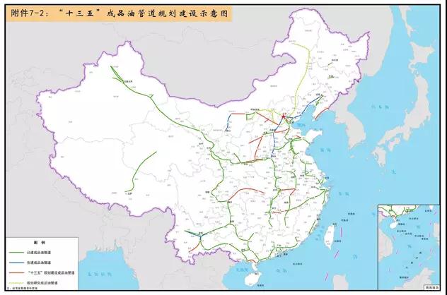 建設中俄原油管道二線、儀長復線、連云港—儀征、日照—洛陽、日照—沾化、董家口—東營原油管道。新建樟樹—株洲、湛江—北海、洛陽—臨汾、三門峽—西安、永坪—晉中、鄂渝沿江等成品油管道,改擴建青藏成品油管道,適時建設蒙西、蒙東煤制油外輸管道。建設中亞D線、中俄東線、西氣東輸三線(中段)、西氣東輸四線、西氣東輸五線、陜京四線、川氣東送二線、新疆煤制氣外輸、鄂爾多斯—安平—滄州、青島—南京、重慶—貴州—廣西、青藏、閩粵、海口—徐聞等天然氣管道,加快建設區域管網,適時建設儲氣庫和煤層氣、頁巖氣、煤制氣外輸管道。 |