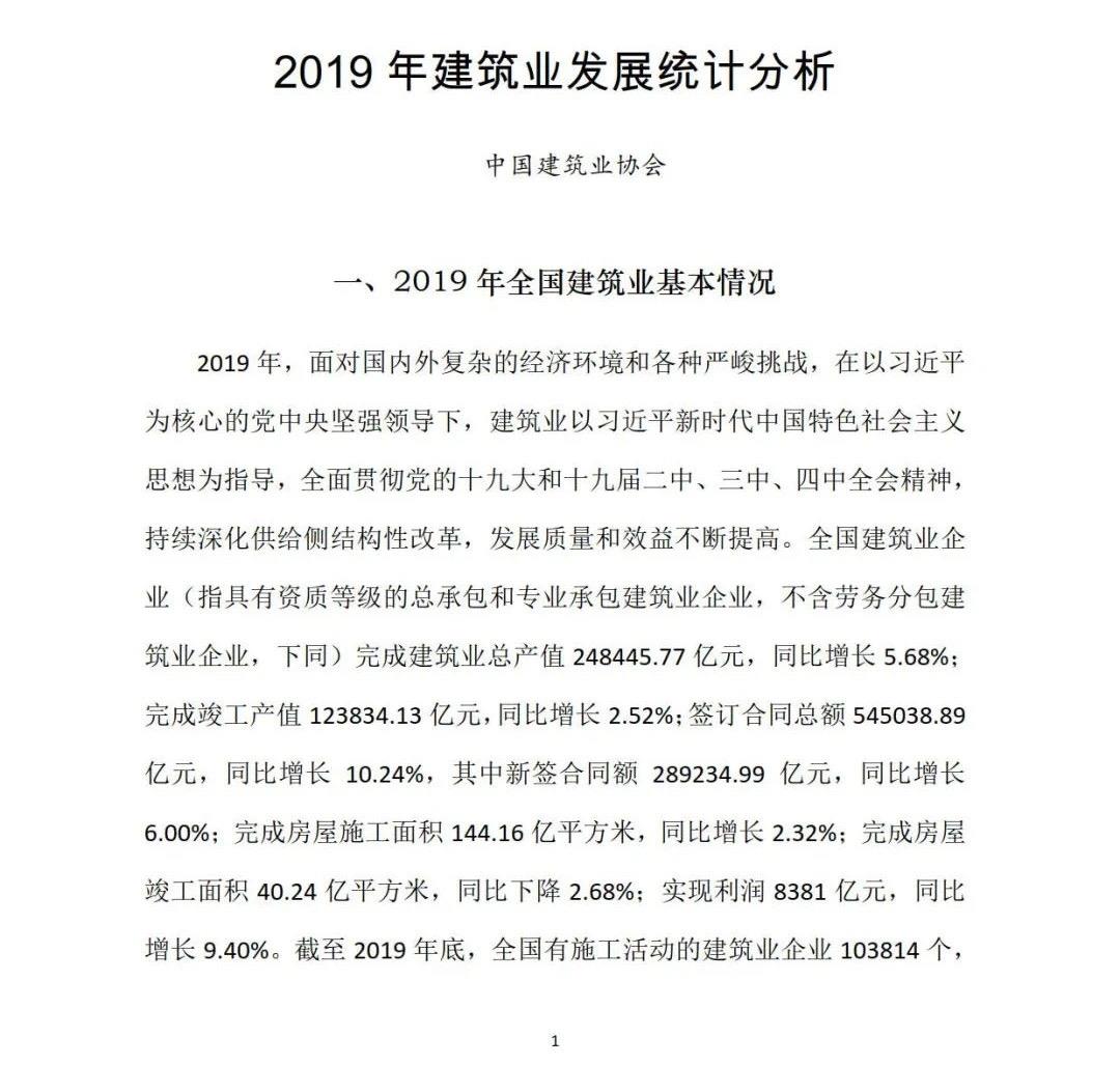 中國建筑業協會發布2019中國建筑業發展統計分析