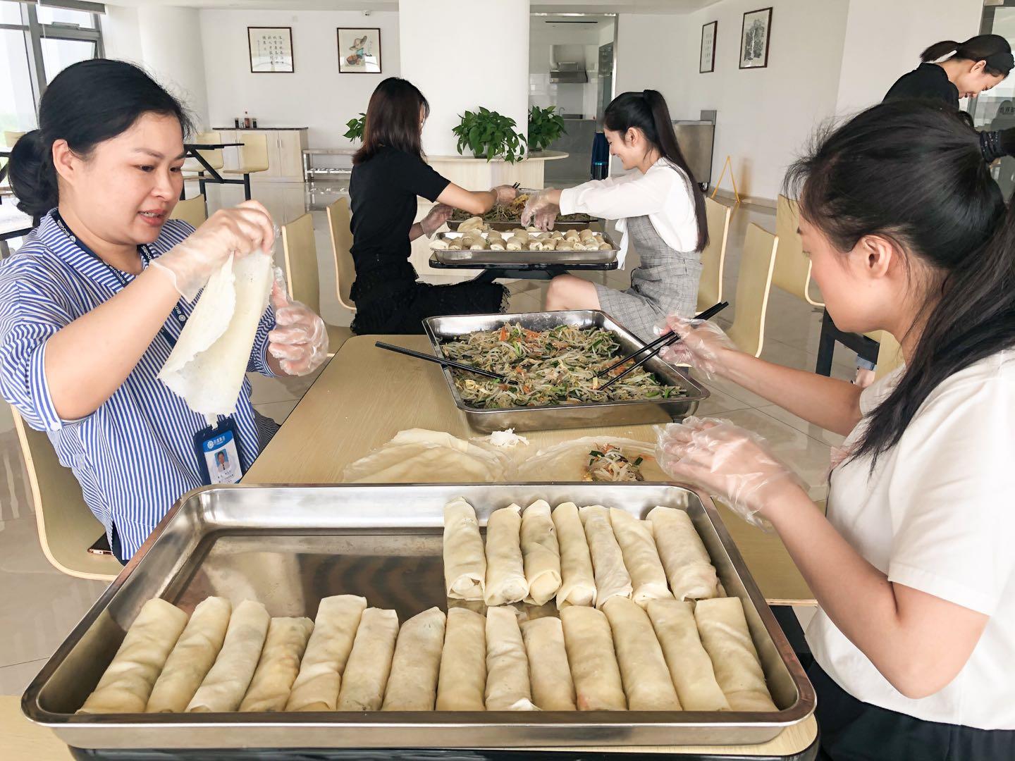 薄餅是溫州端午節所特有的點心,一般包薄餅卷的餡以豆芽、韭菜為主,加入肉絲、蛋絲、香菇絲,成為端午節雞蛋、粽子之外最主要的節慶食物。今天上午,百盛員工和食堂大廚共同制作了香氣四溢的美味薄餅,讓員工品嘗到了溫州特色食物,感受傳統節日氣氛。
