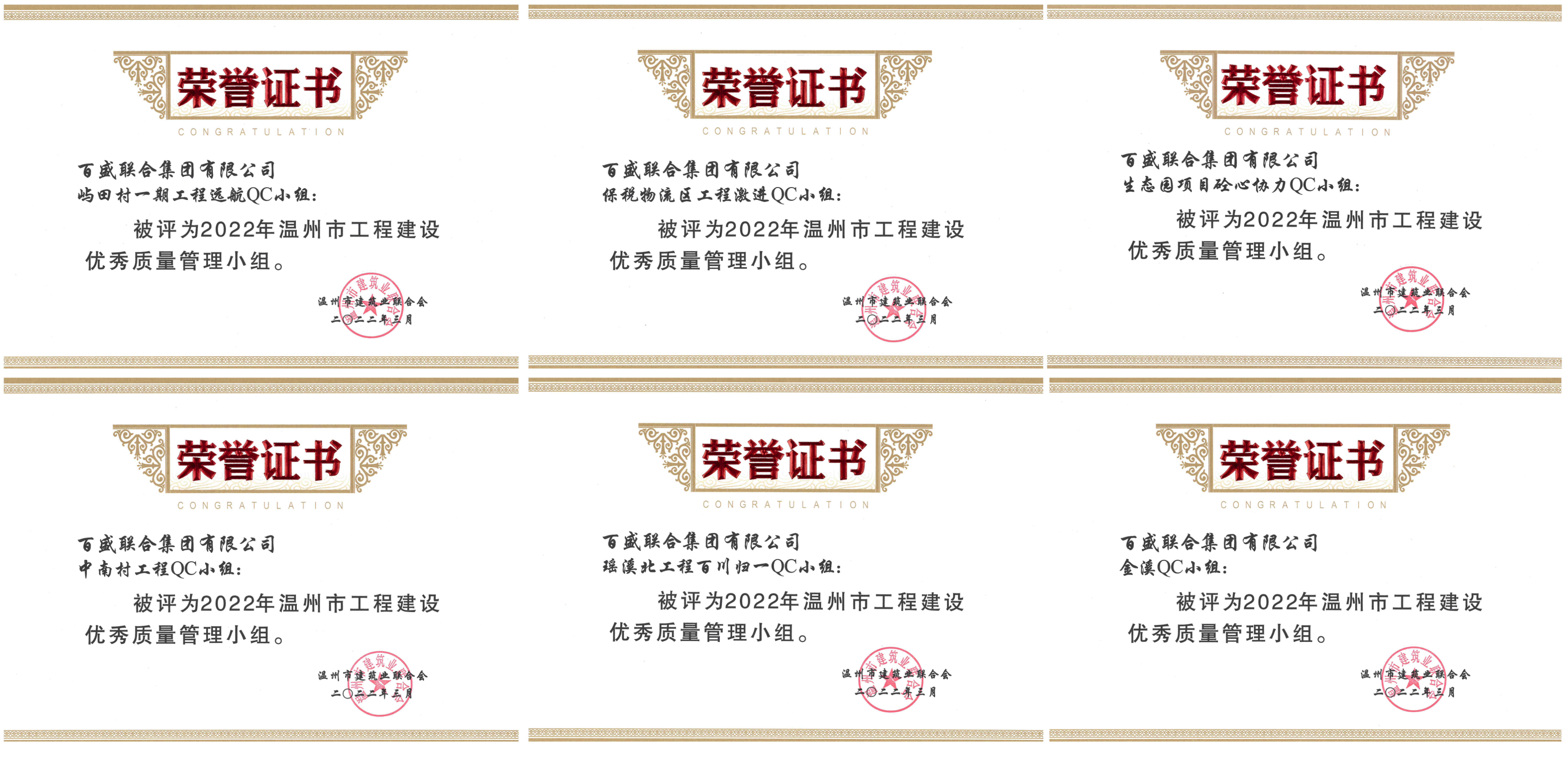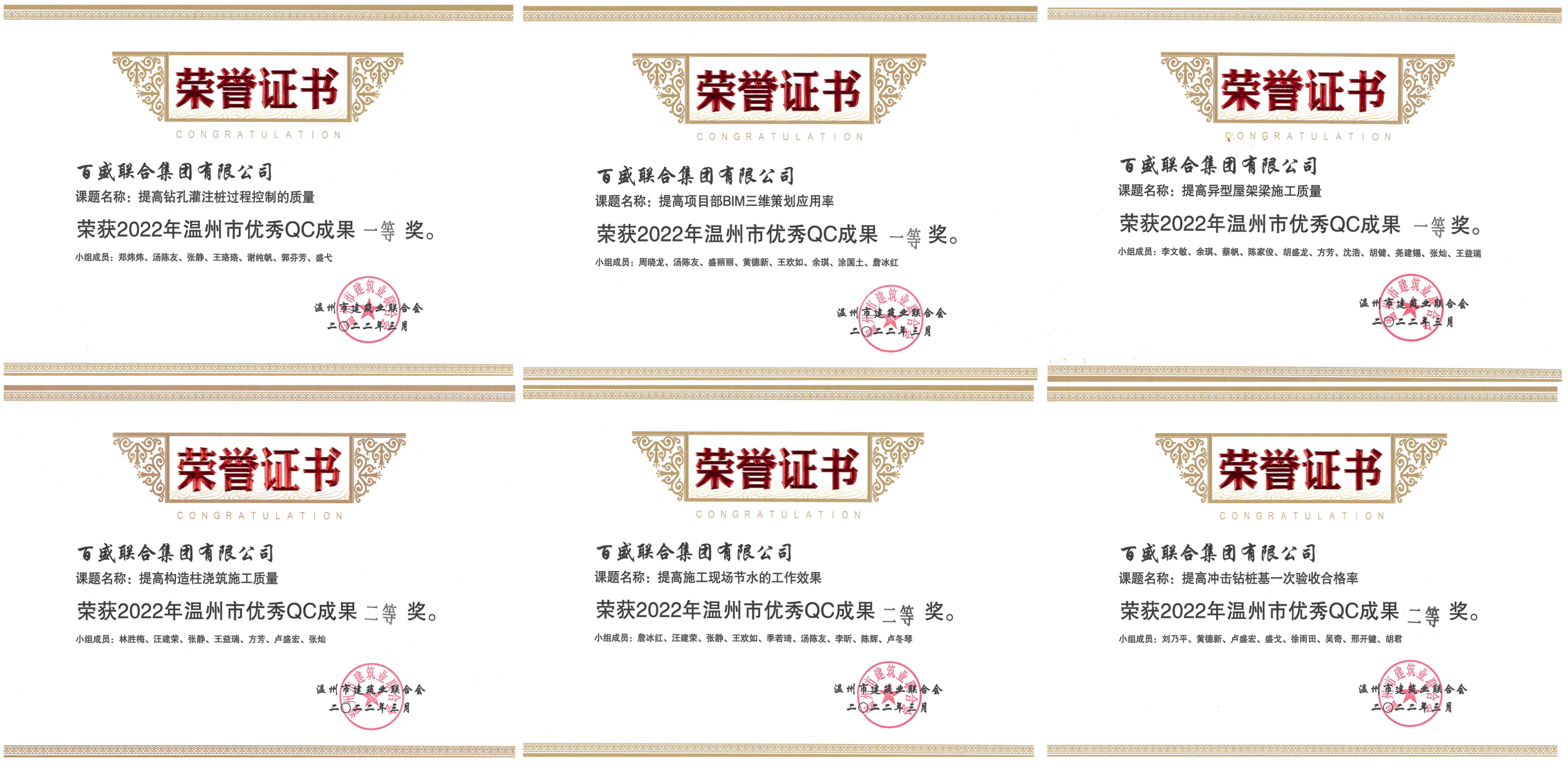 近日,在2022年溫州市工程建設QC成果交流學習會上,百盛聯合集團有限公司申報的6項成果斬獲獎項,再創佳績。