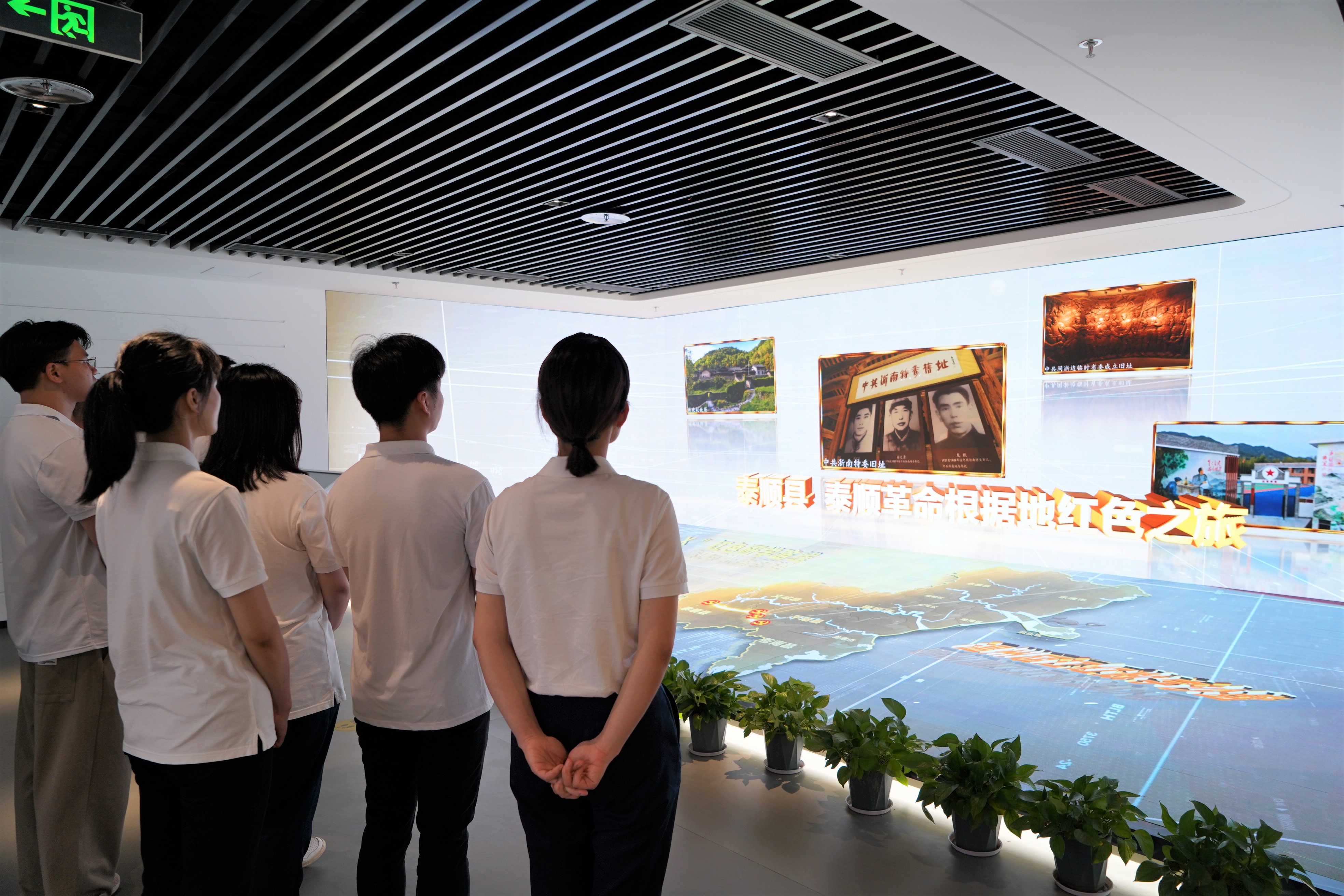 “甌江紅”黨建人才綜合體以“黨員教育、群眾服務、人才孵化、干部調適”為主要內容。在講解員的帶領下,全體黨員先后參觀了時光走廊、黨史教育館、紅色理想區、主題黨日館等特色區域。一件件文物、一幕幕影片,無不激勵著在場黨員們牢記初心使命。通過巨幅沉浸式折幕、全包圍沉浸式影像、四面高清沉浸式數字沙盤等高新技術,黨員們在這里回顧百年黨史崢嶸歲月,緬懷革命英雄。