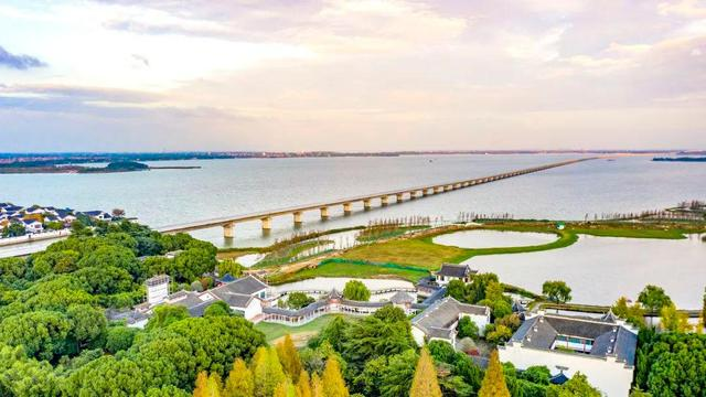 在建中的滬蘇湖鐵路宛如“長龍”橫臥元蕩湖 孫中欽 攝