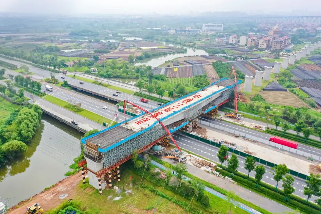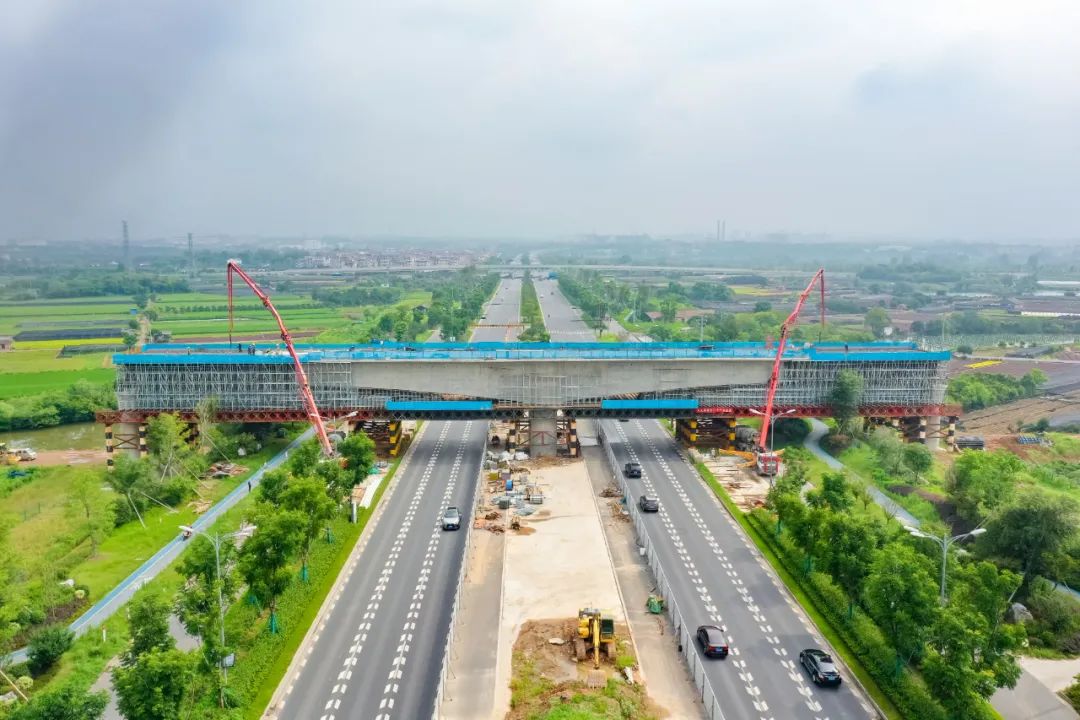 跨滬昆鐵路特大橋為全線重點工程之一,主要跨越滬昆鐵路、規(guī)劃中的金千鐵路改線段、在建S45省道,還下穿滬昆高鐵。