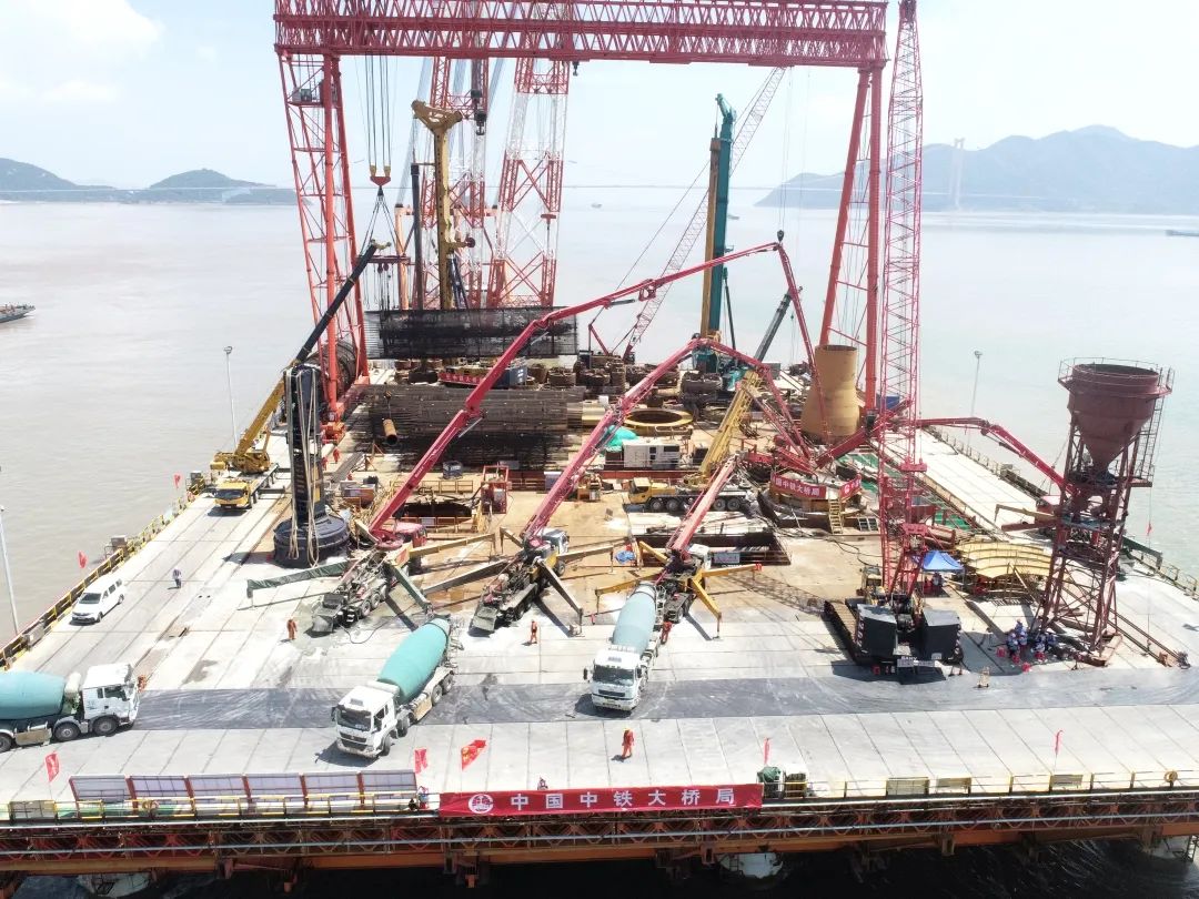 甬舟鐵路西堠門公鐵兩用大橋5號主塔墩首個樁基灌筑完成