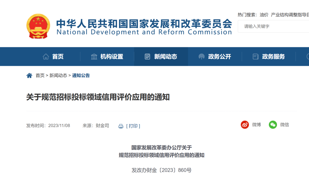 據國家發展改革委11月8日消息,近日,國家發展改革委辦公廳印發《關于規范招標投標領域信用評價應用的通知》(下稱《通知》)。
